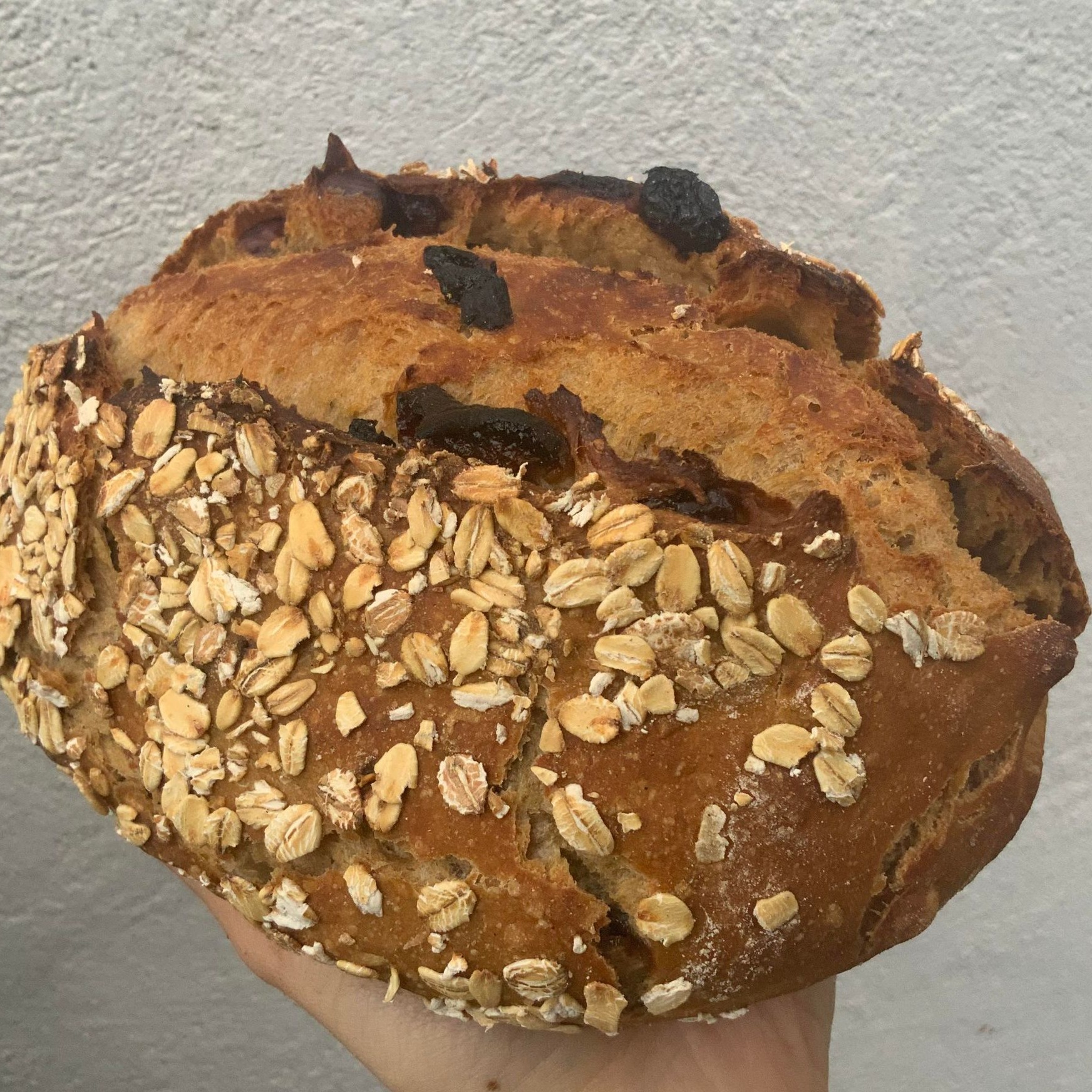 Farine de BLE T80*, cranberry*, AVOINE*, NOISETTES*, levain*, sel de Guérande